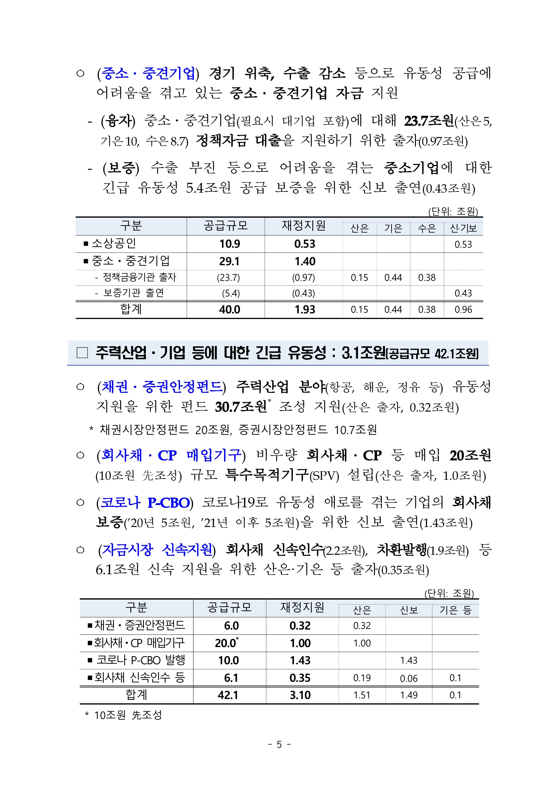 소상공인뿐만 아니라 중소기업과 중견기업의 긴급자금 활용 등 기업 부양을 위해 노력을 경주하겠다고 합니다.