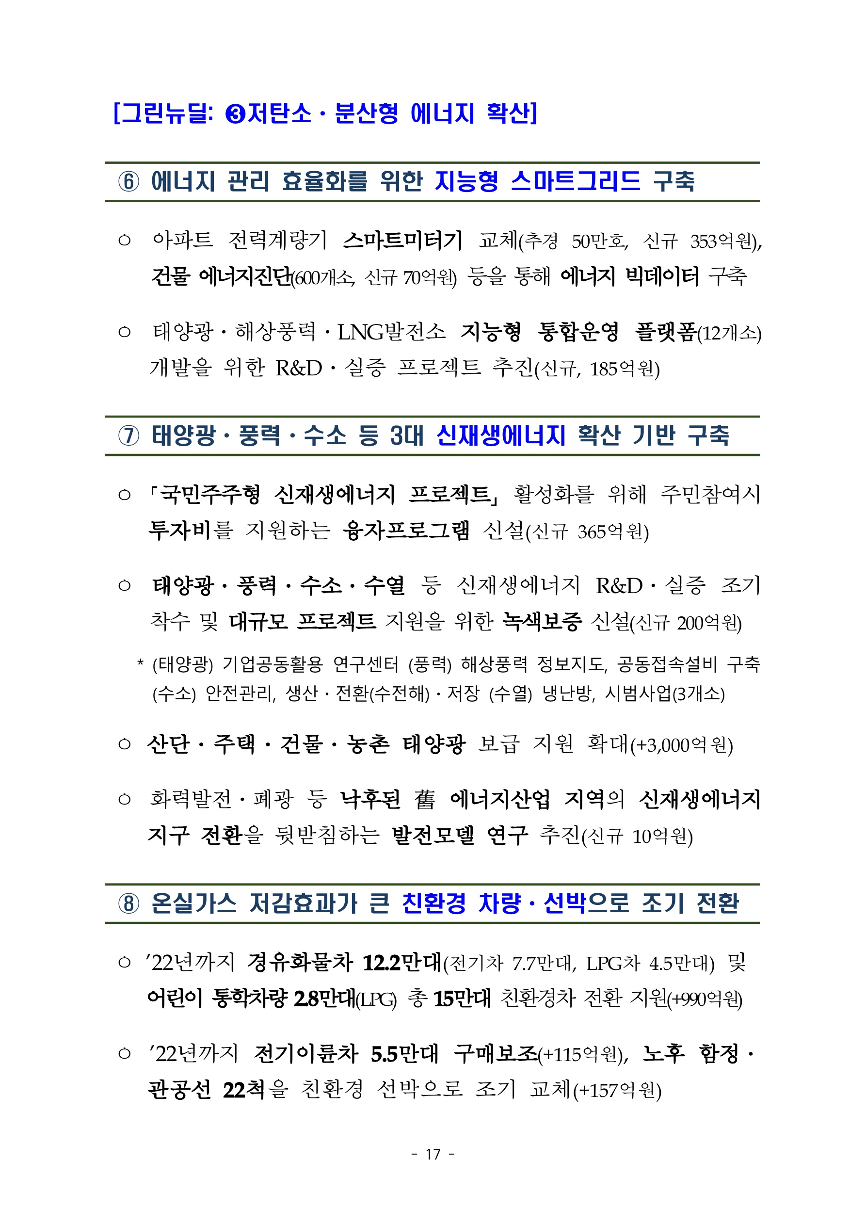그린 뉴딜 관련 저탄소 및 분산형 에너지 확산과 관련된 내용입니다.