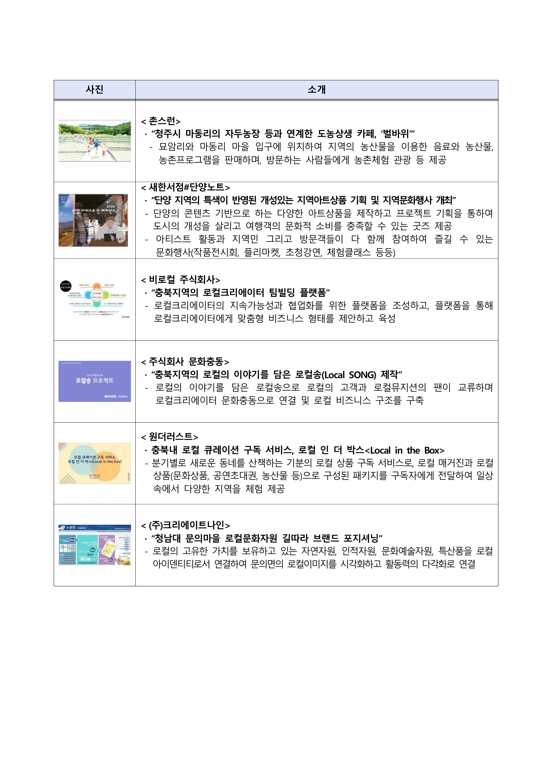 그리고 아래는 지역기반 로컬 크리에이터 활성화 지원 사업 개요에 대한 부분입니다. 참고하시면 좋겠습니다.