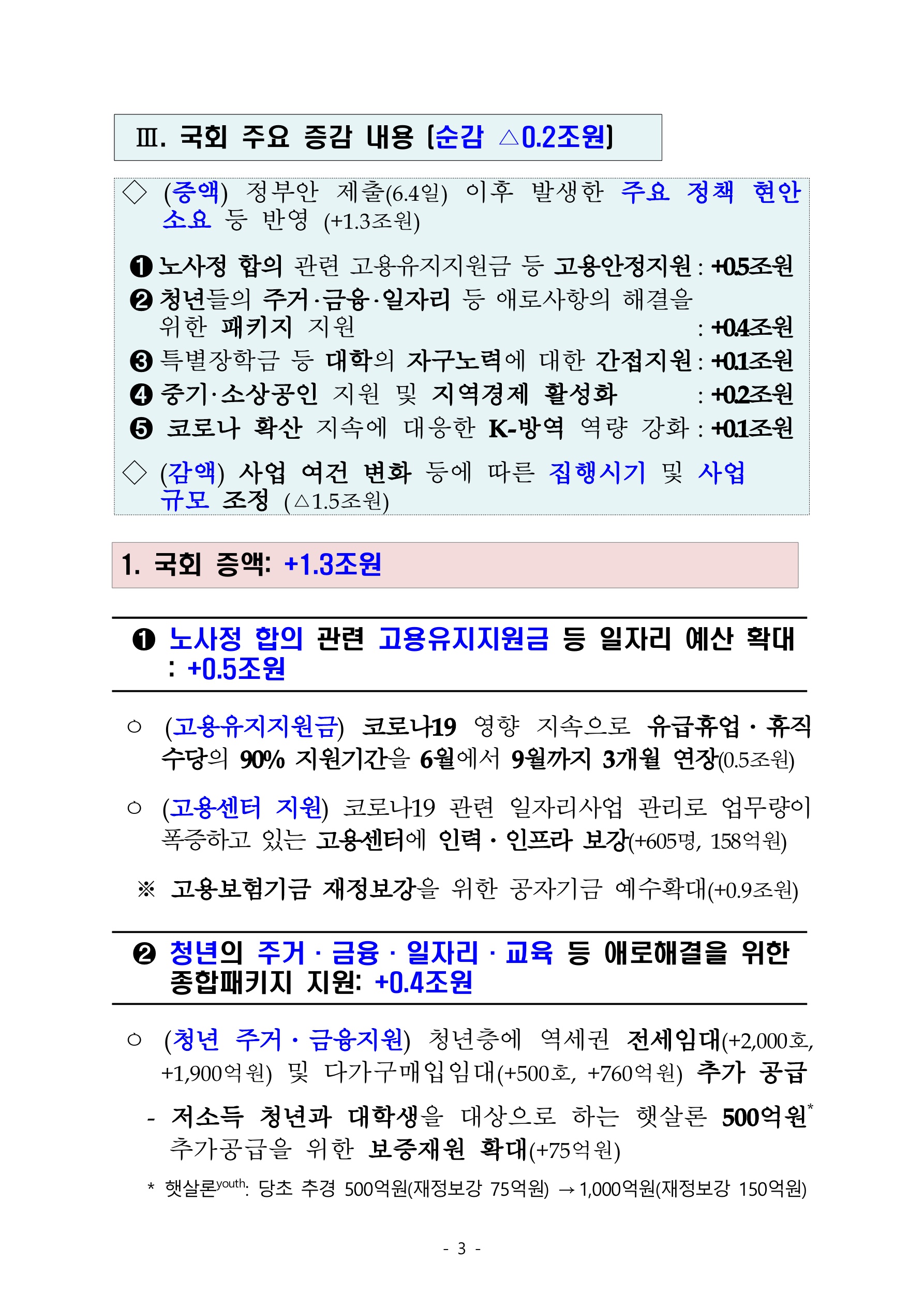 아래부터는 기획재정부의 공지 내용입니다. 내용은 경제위기 조기극복과 포스트 전염병 시대 대비를 위한 2020년도 제3회 추가경정예산(추경) 국회 확정 관련 내용입니다. 아직 국회 본회의를 통과하지 않았음을 인지하셔야 합니다. 아직 국회 본회의를 통과하지 않은 상태에서 국회 본회의에 의결된 사항을 알려드리고 있습니다.