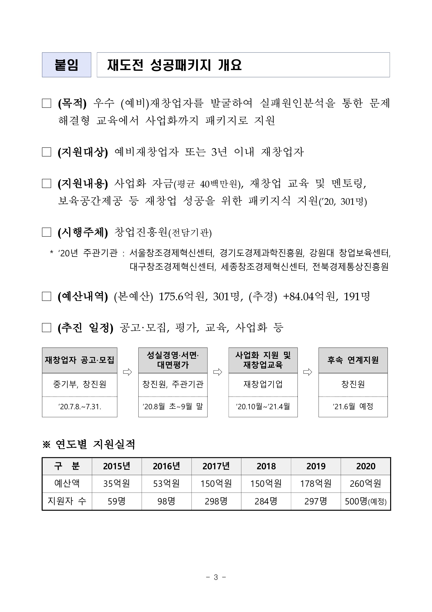 안녕하세요! 창업성공코치입니다. 오늘은 재도전성공패키지 (재기/재창업자)지원 (사업 실패자 교육) 관련 도움되는 내용을 전해드리고자 합니다. 정부(중소벤처기업부)에서는 창업에 실패하신 분들을 대상으로 하여 재기 지원을 하기 위해 다양한 사업을 하고 있습니다. 그중 오늘 전해드릴 내용이 그 대표적인 사업이라 판단됩니다.