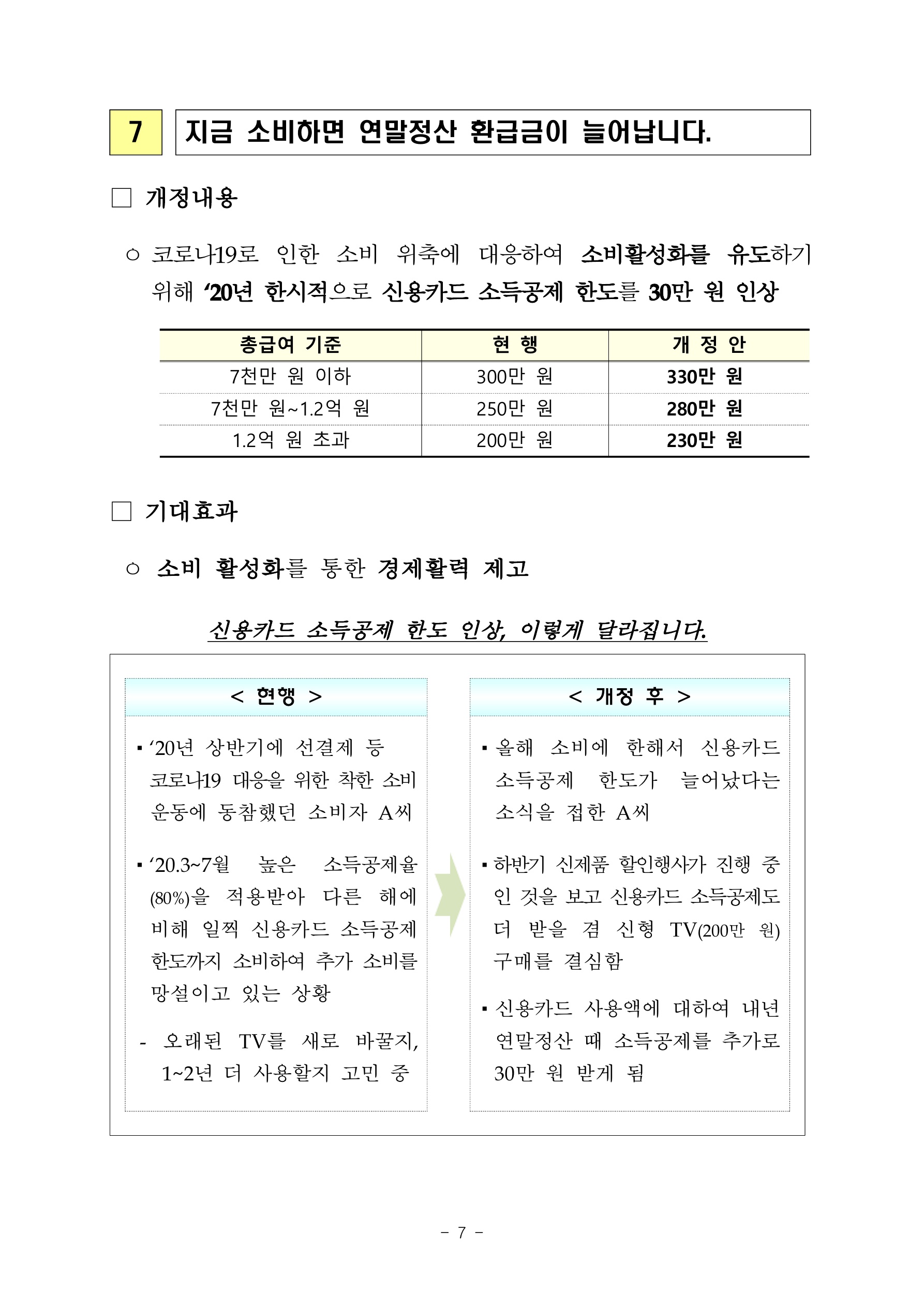 그리고 지금 소비하면 연말정산 환급금이 늘어난다고 합니다. 소비 활성화를 위한 전략이라고 합니다.