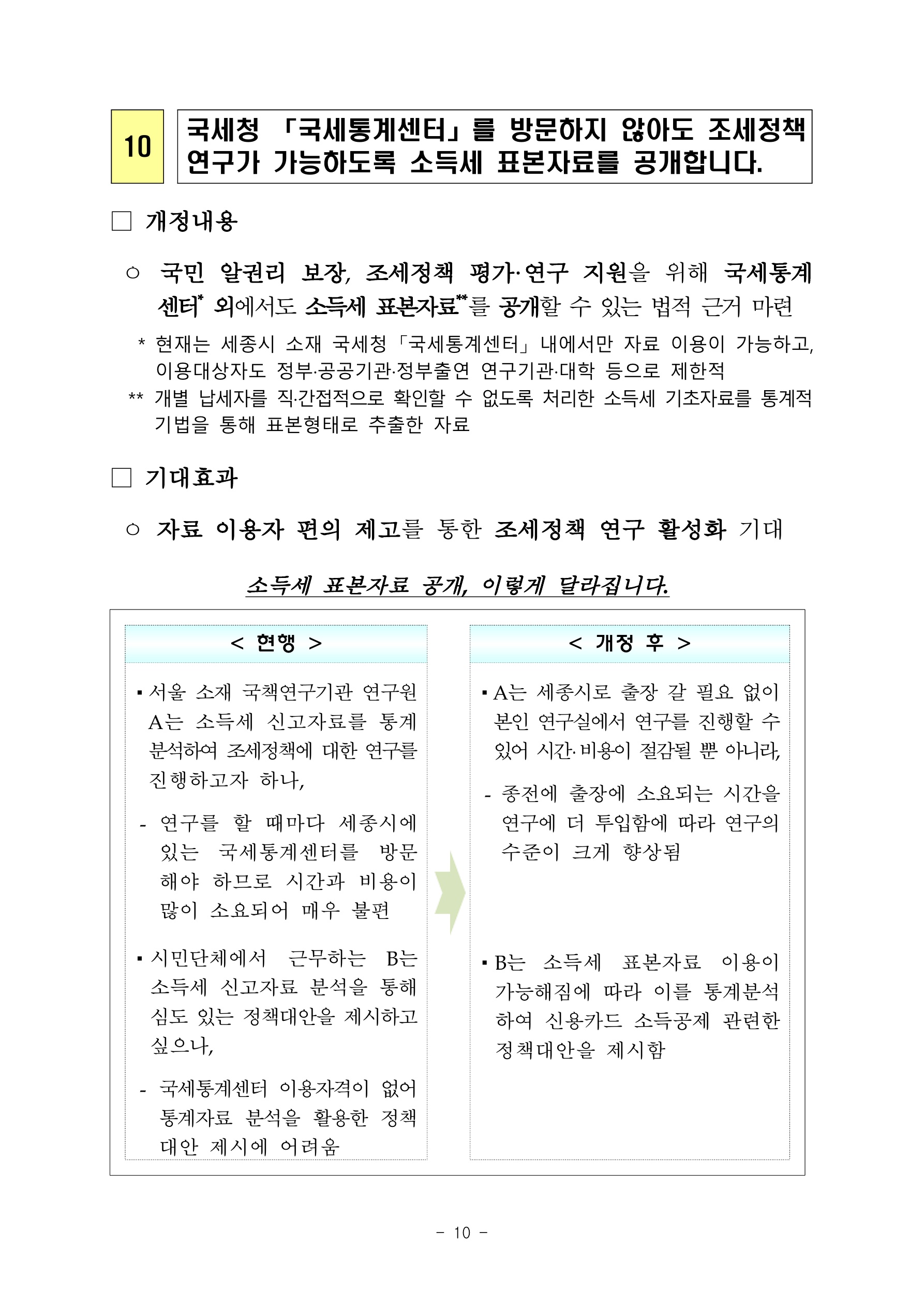또한 국세청의 국세통계센터를 방문하지 않아도 조세정책 연구가 가능하도록 소득세 표본자료를 공개한다고 합니다. 아래 내용과 같습니다.