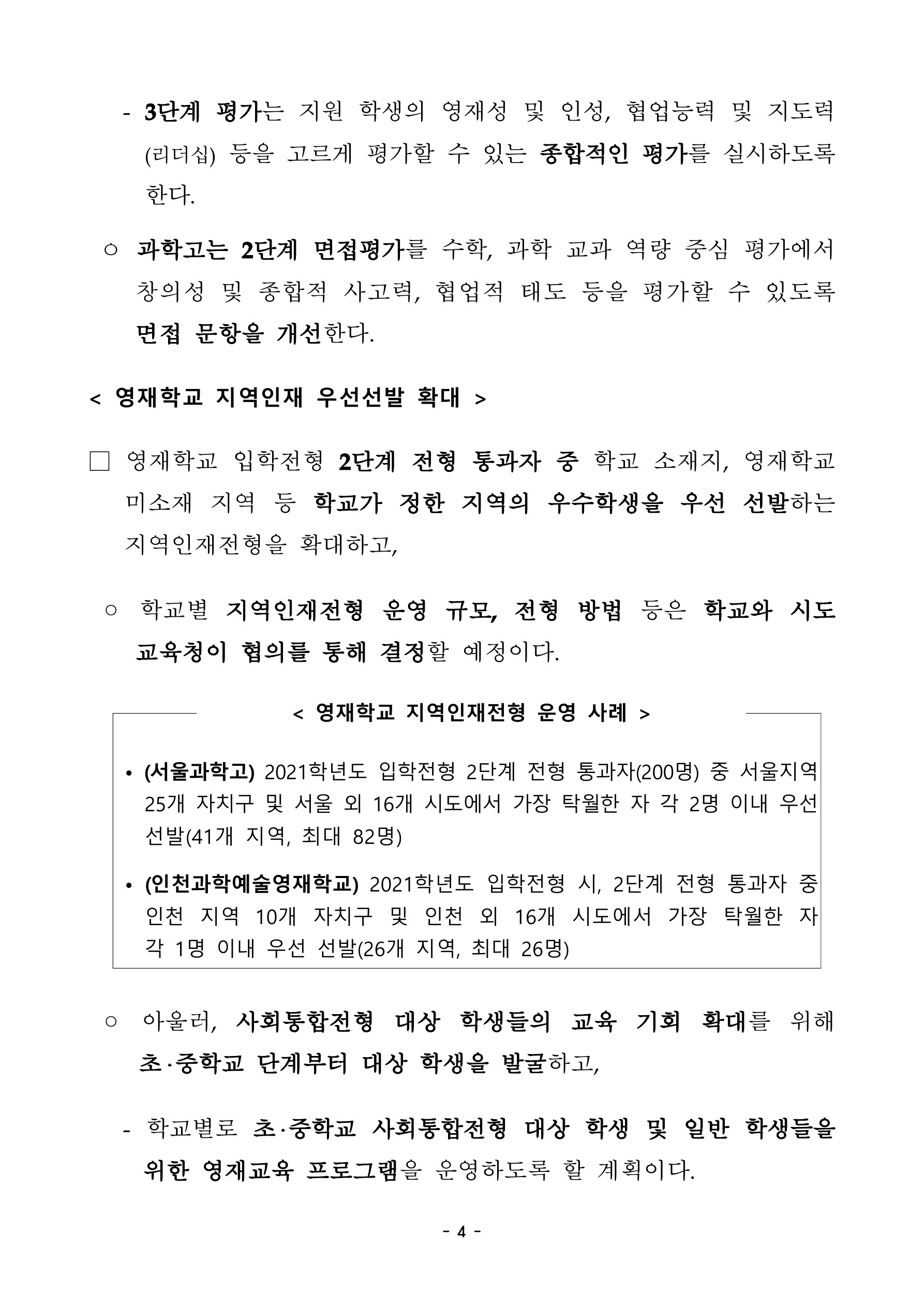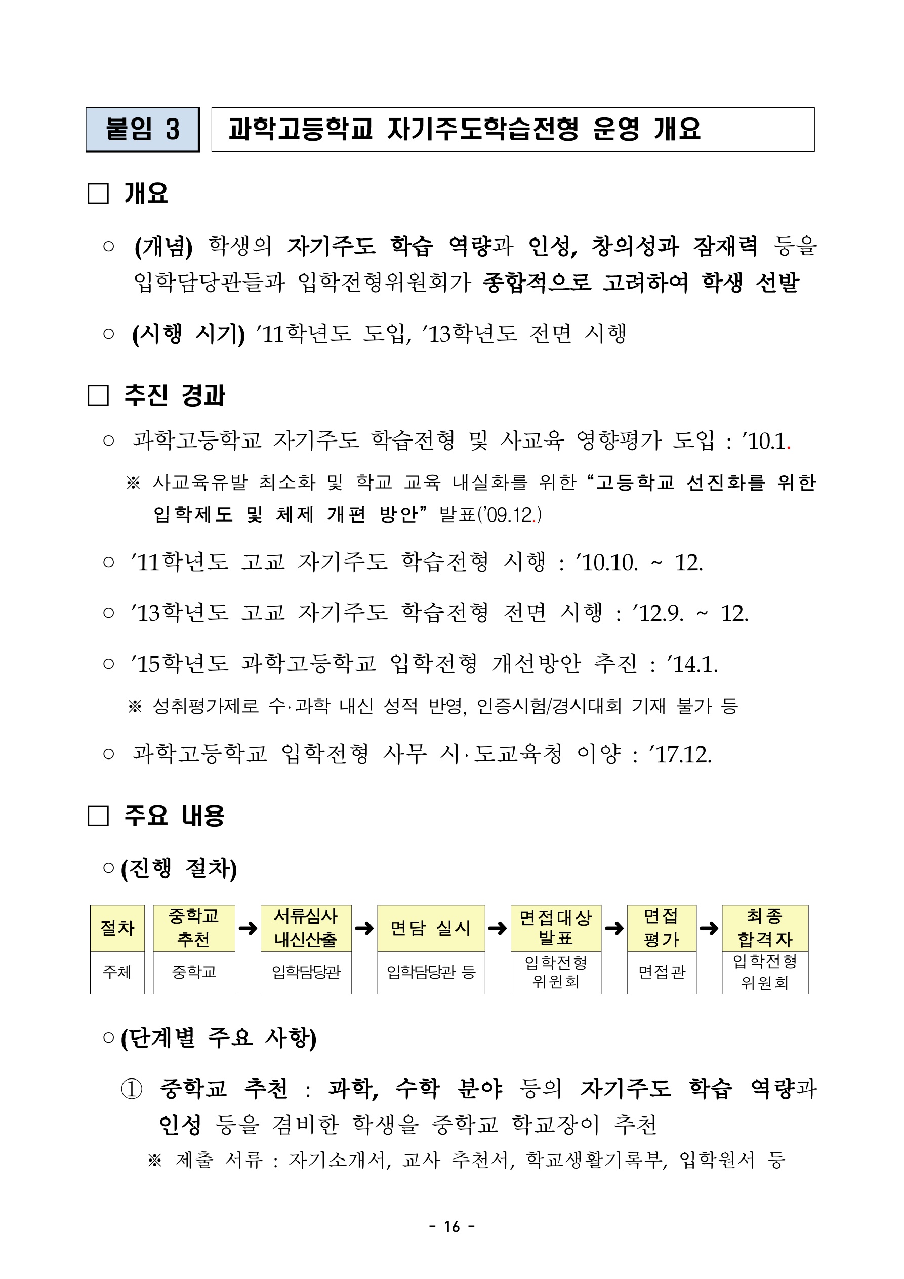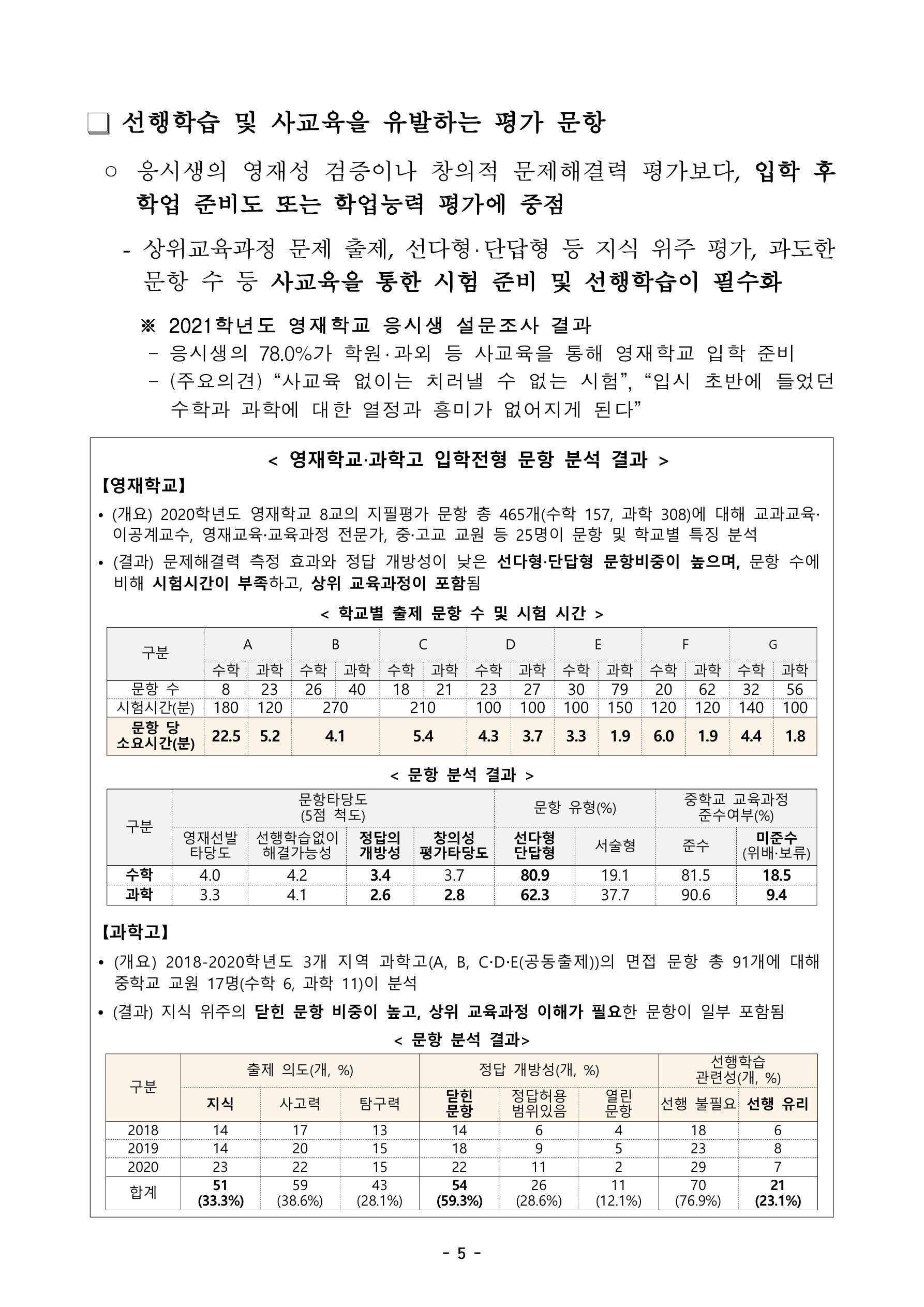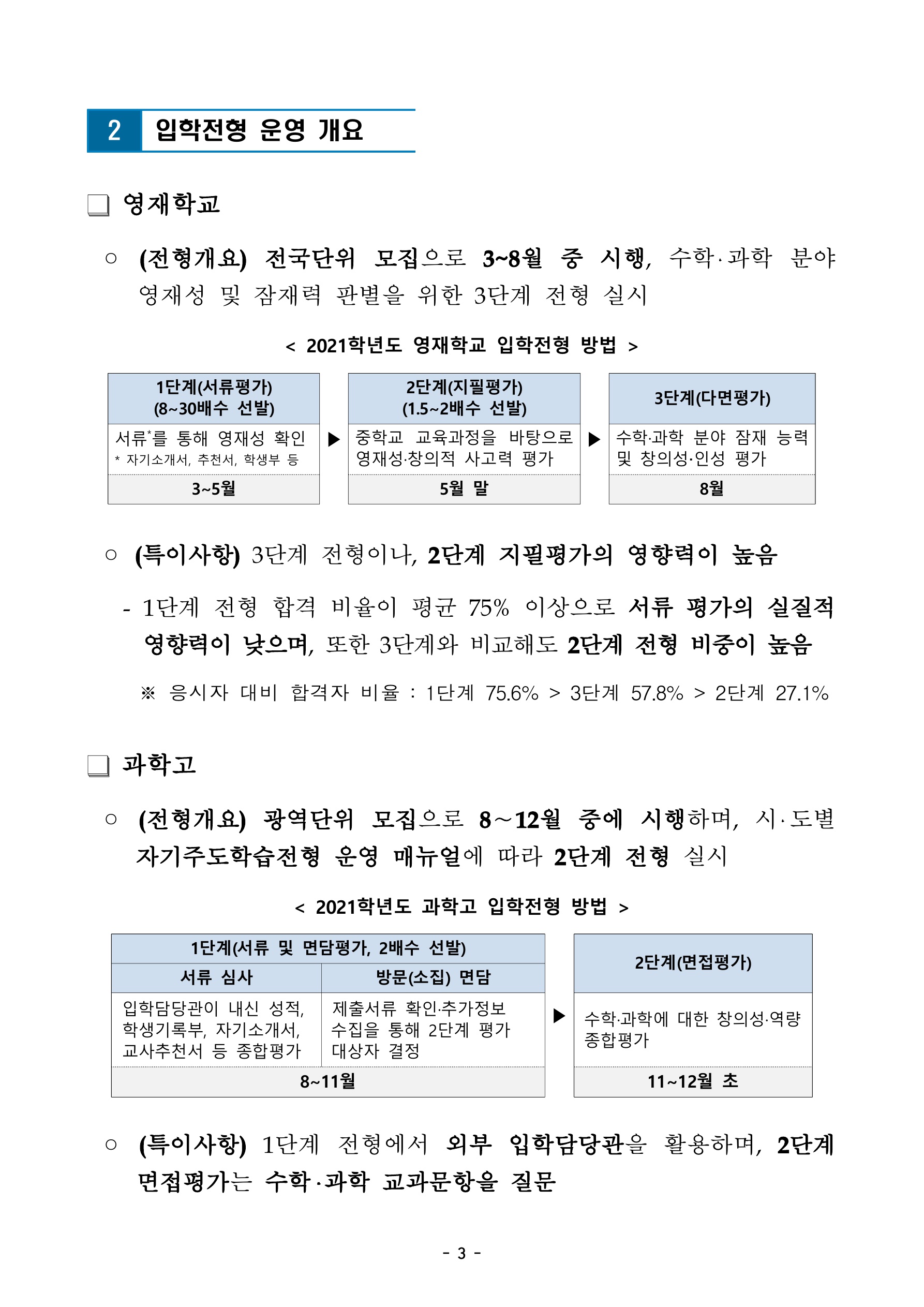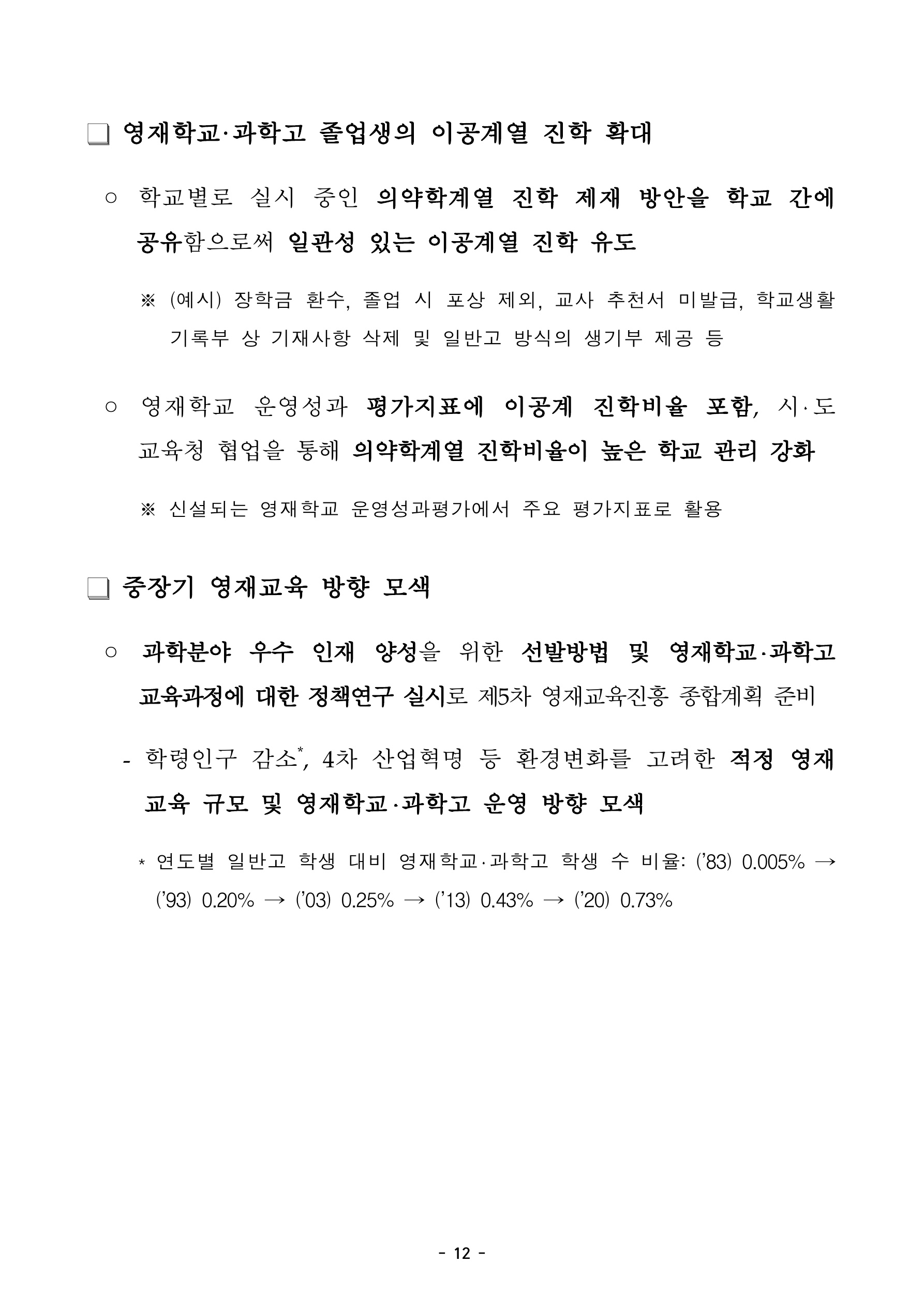 아래는 영재학교, 과학고 입학전형 평가 문항 및 방법 개선의 내용입니다.