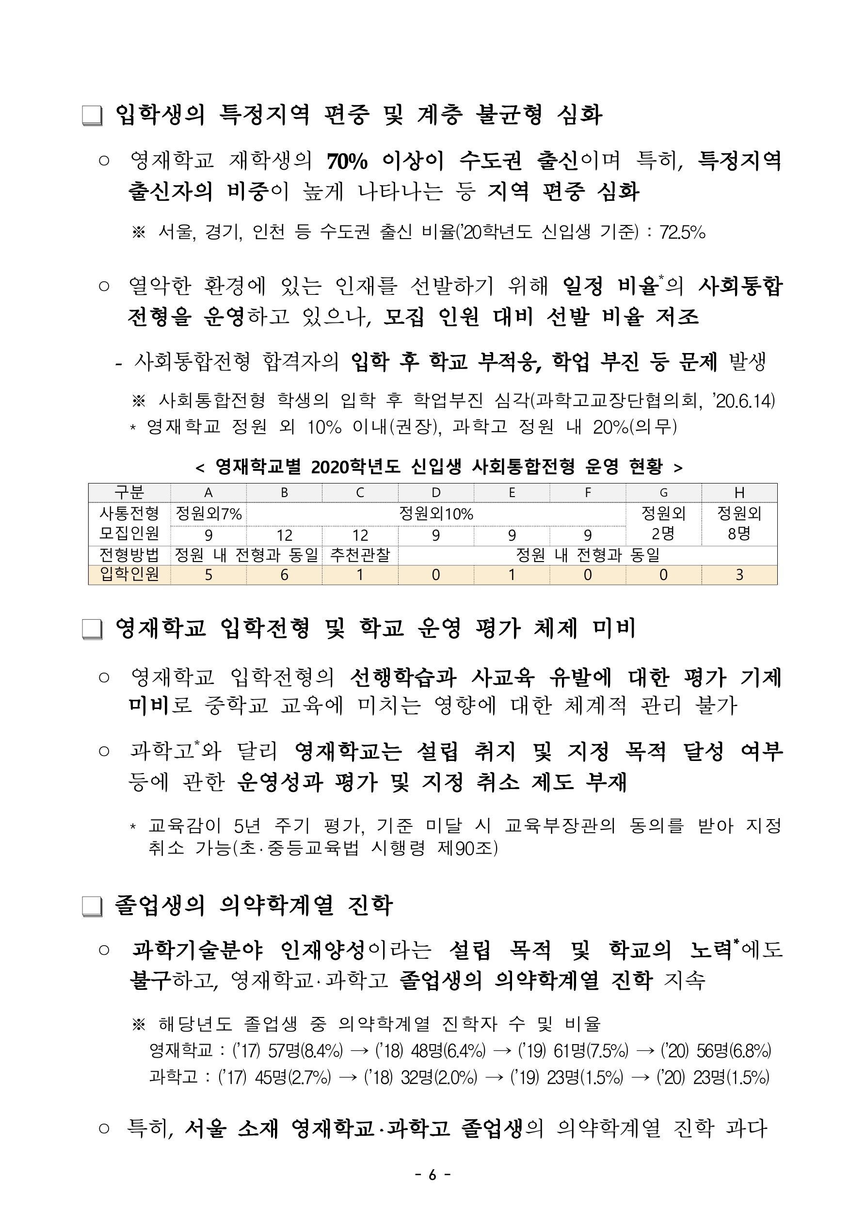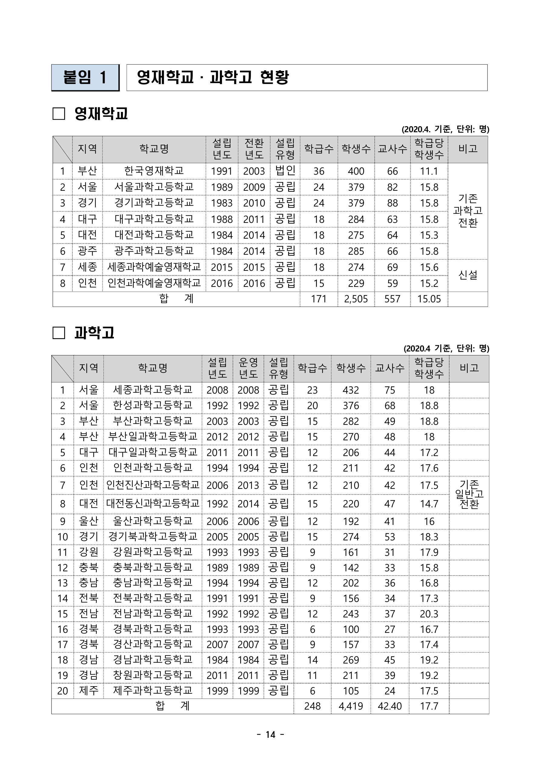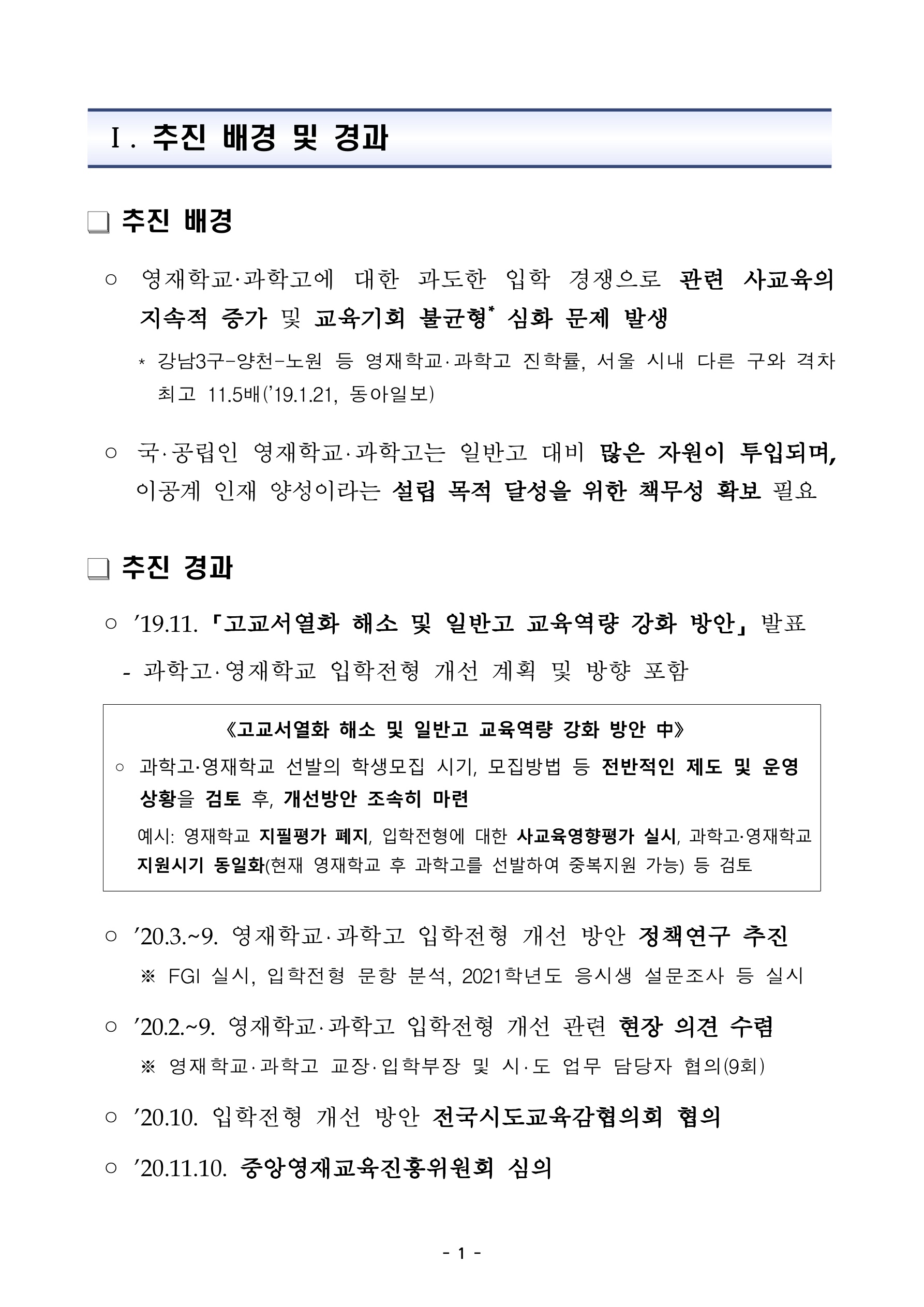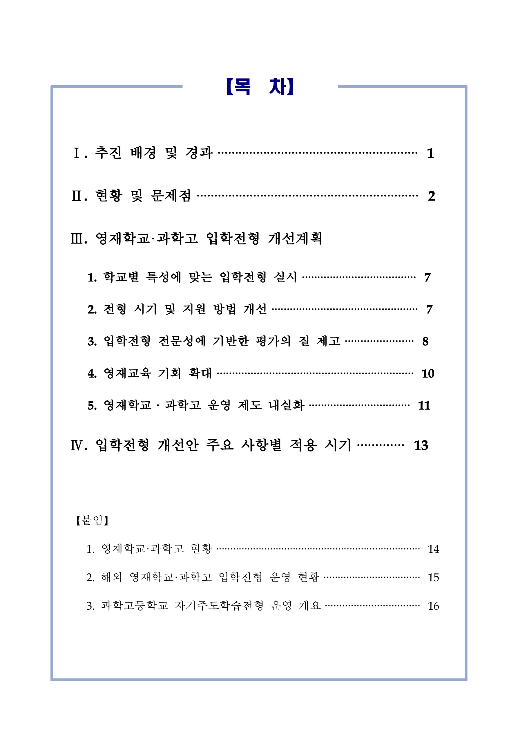 아래는 영재학교, 과학고 입학전형 평가 문항 및 방법 개선의 내용입니다.