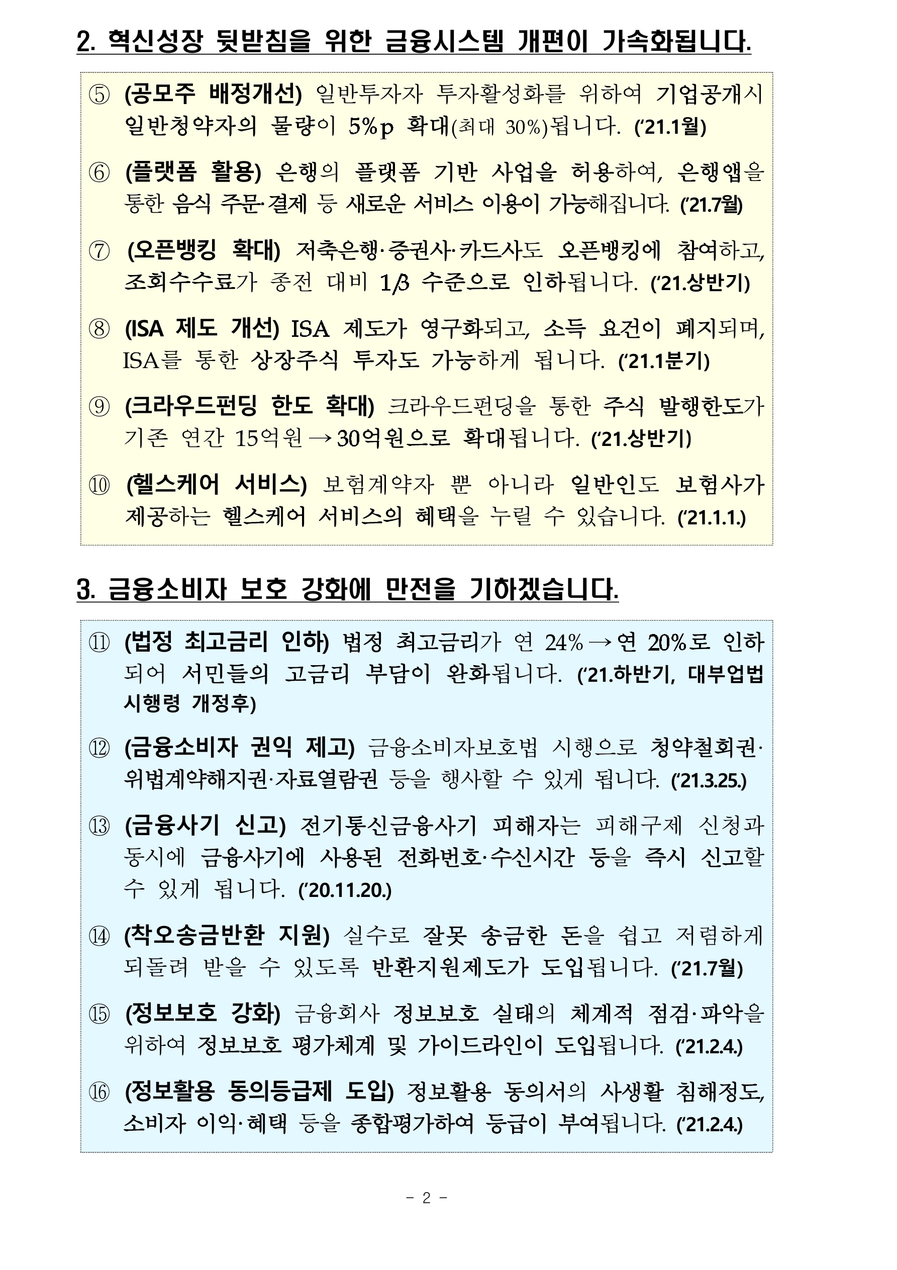 아래부터는 붙임.문서입니다. 새해부터 달라지는 금융제도 세부내용입니다. 어떤 내용이 있는지 살펴보시죠.