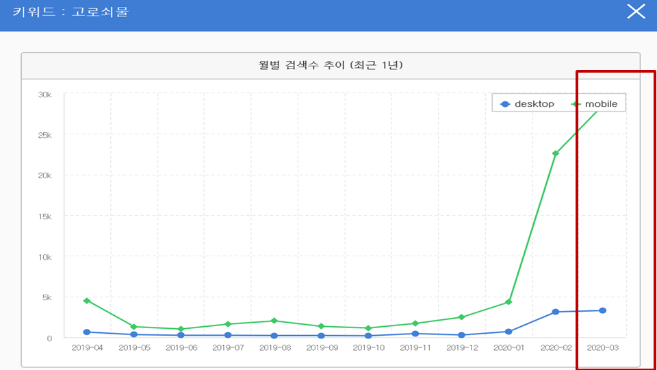 참고로 녹색이 모바일이며, 파란색이 PC 데이터이니 참고하시구요.