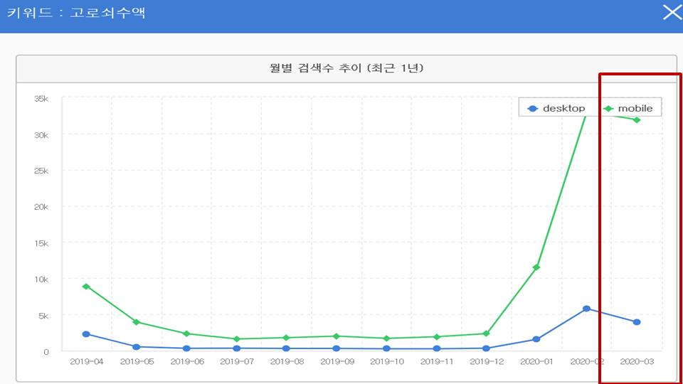 그럼 고로쇠수액의 키워드를 기준으로 검색 추이를 살펴보겠습니다.