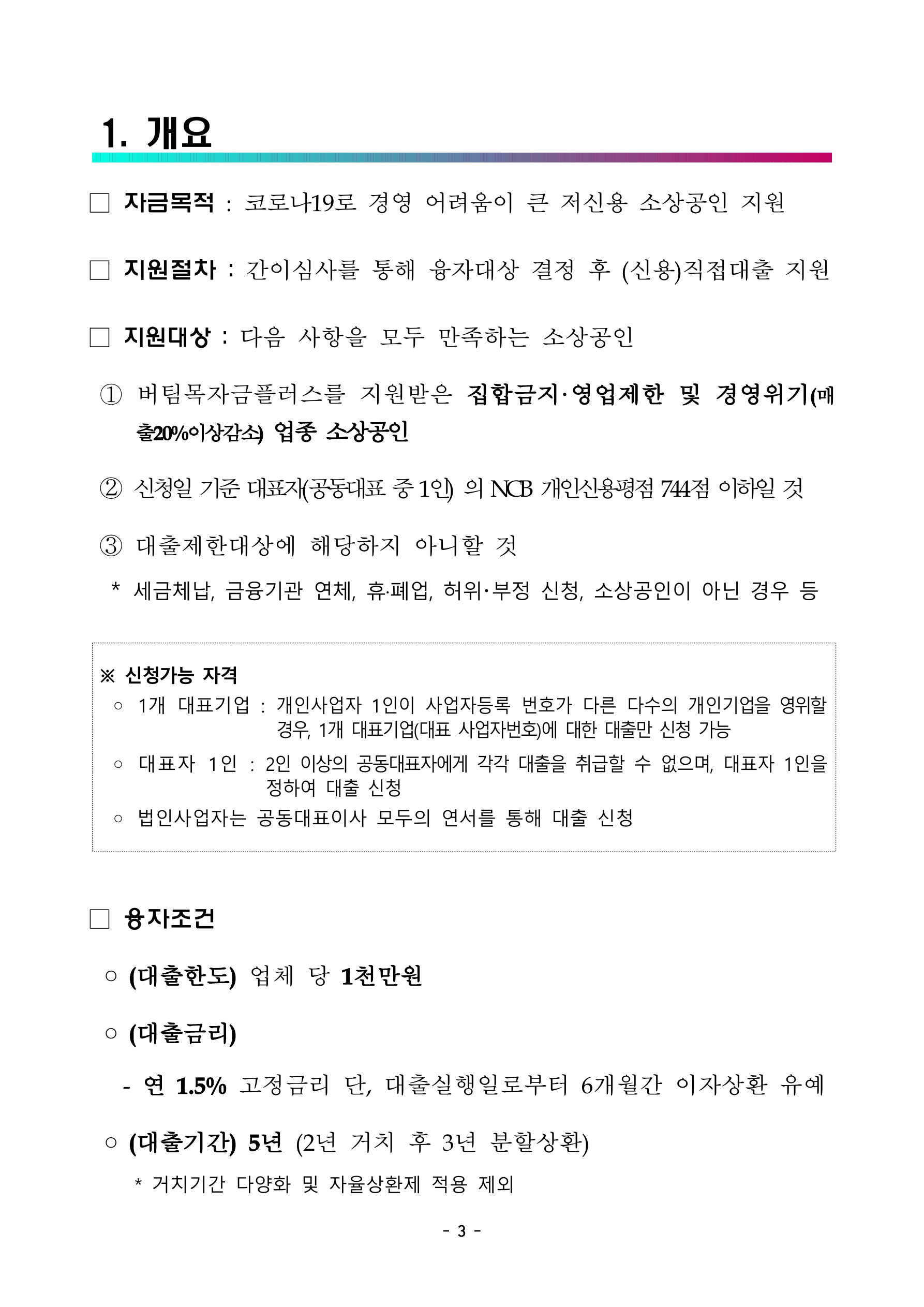 아래부터는 소상공인시장진흥공단 출처의 관련 문서입니다. 소상공인 저신용자를 대상으로 한 융자 신청 안내자료입니다.