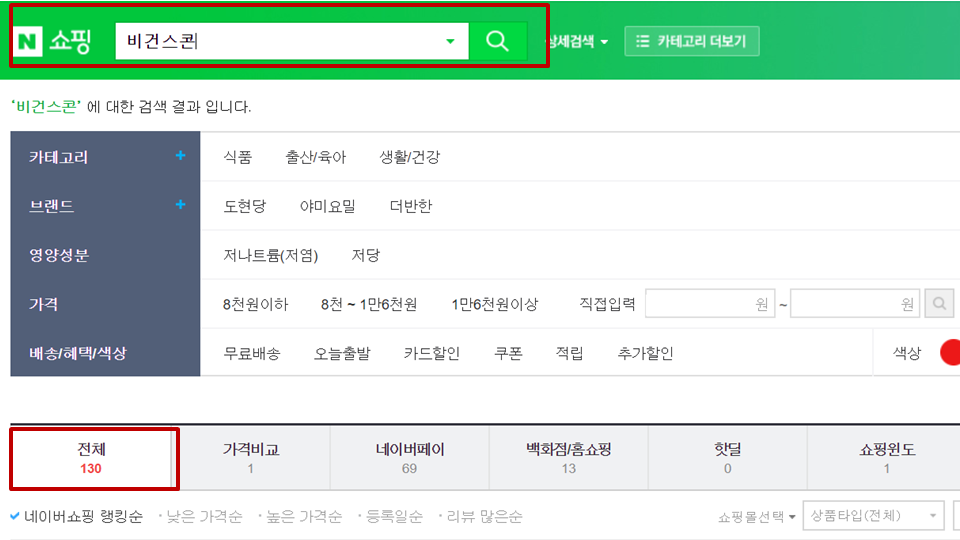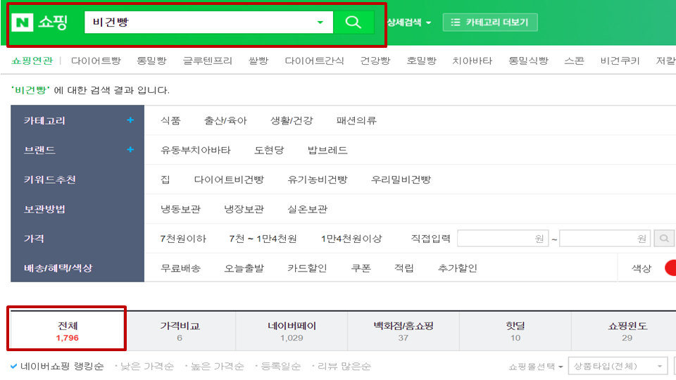 비건빵. 키워드 검색 시 네이버 쇼핑의 입점수를 살펴보시죠.