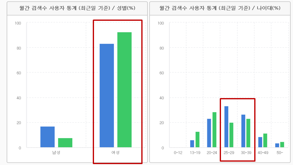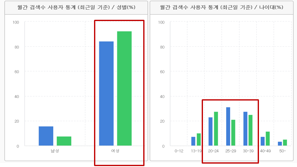 20~30대 여성분들이 모바일에서 검색을 많이 하시네요,