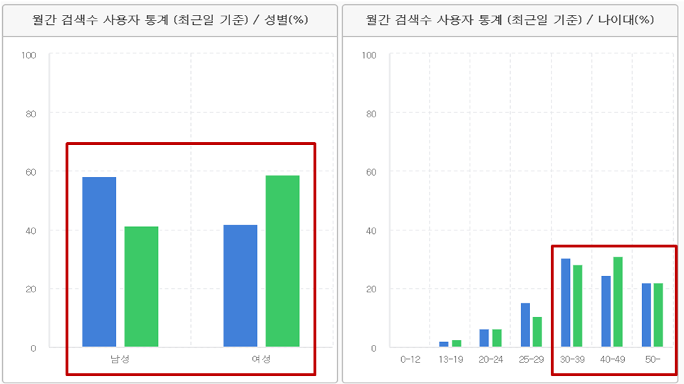 다만 여성은 모바일에서, 남성은 PC에서 검색을 좀 더 많이 한다는 특색을 보이고 있습니다.
