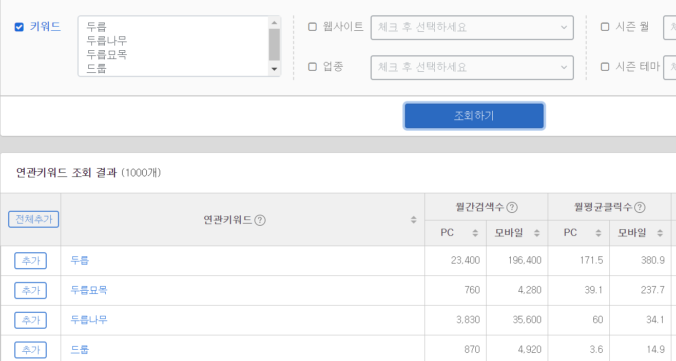 아래 보시는 바와 같이 월감 검색수를 일단 체크하시면 되겠습니다.