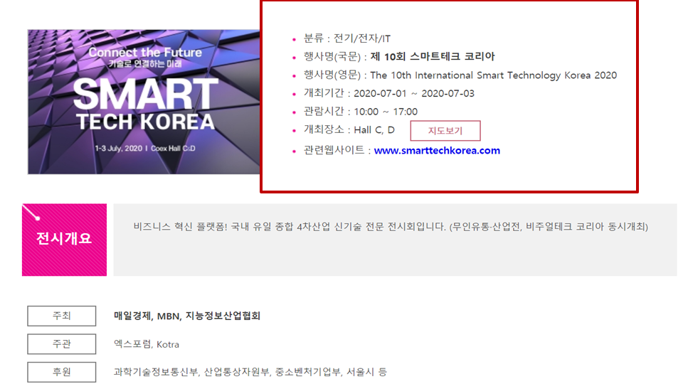 참고로 앞서 보여드렸던 정보들의 박람회는 2021년, 2020년 계속할 겁니다.(특별한 사유가 없는 한) 그래서 혹시 이 정보를 전시회가 지난 시점에 인지를 하셨더라도 연이어 할 것이기에 미리 잘 인지를 하셔서 신청하시면 좋겠습니다.