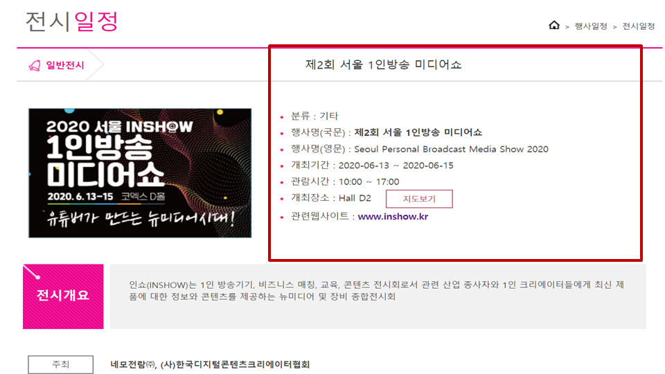 먼저 아래 서울 1인 방송 미디어쇼입니다.