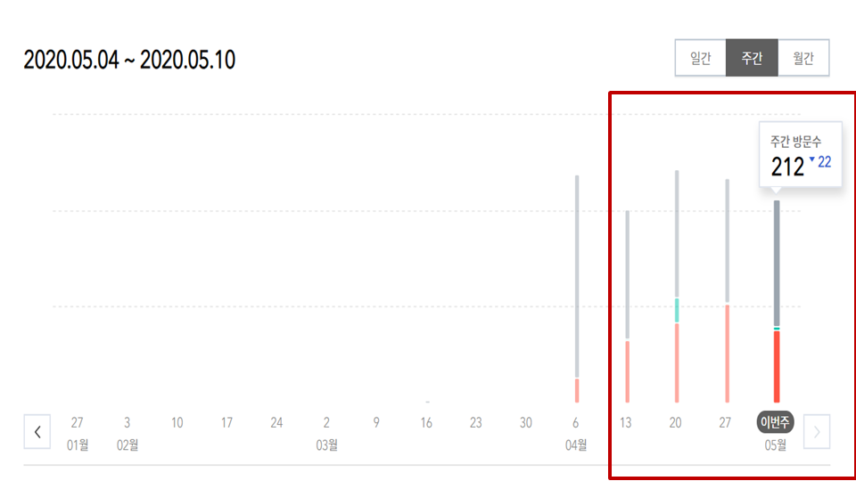 물론 게시물이 누적되고 블로그가 활성화되면서 우상향 할 것이라 생각하고 있습니다.