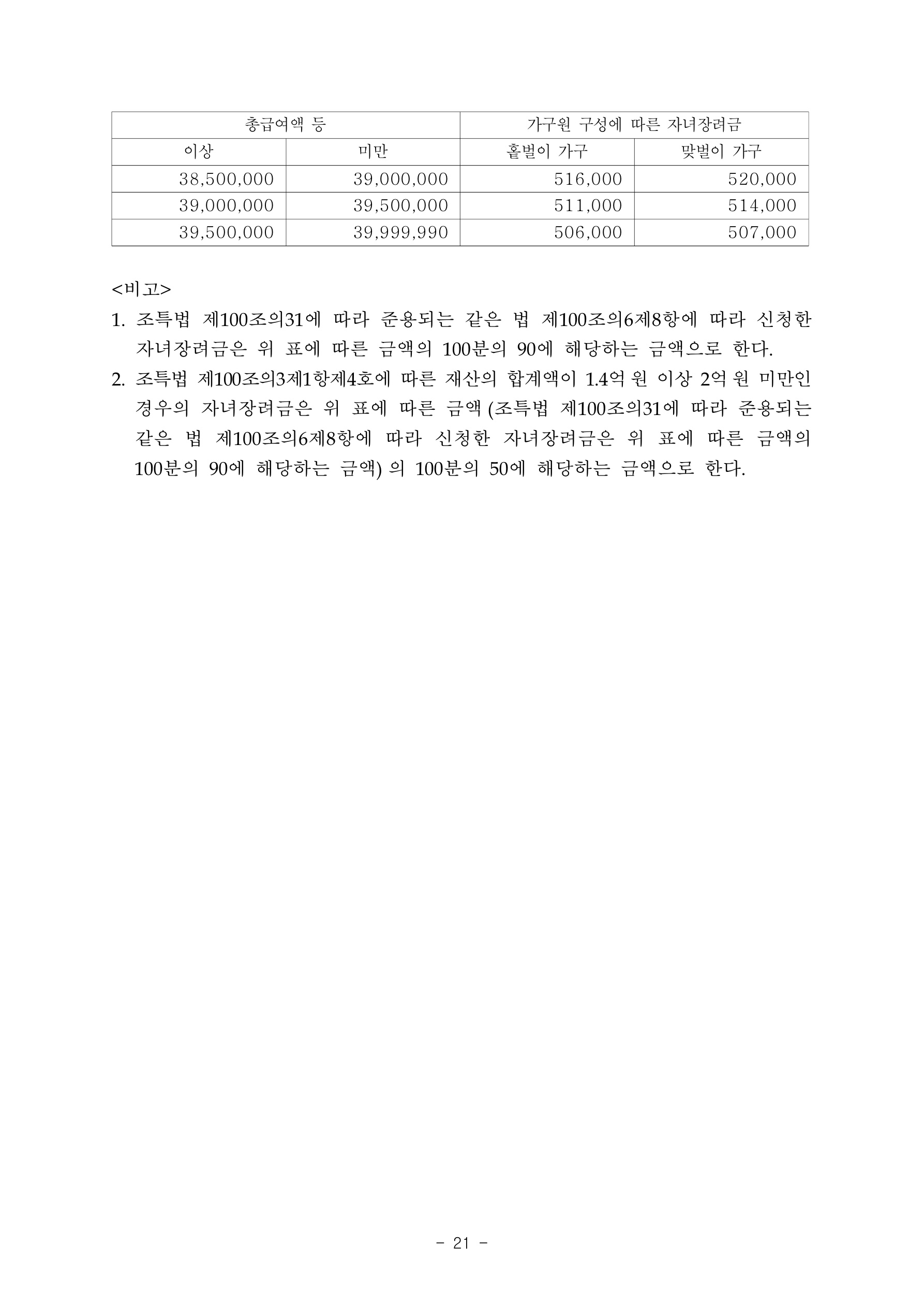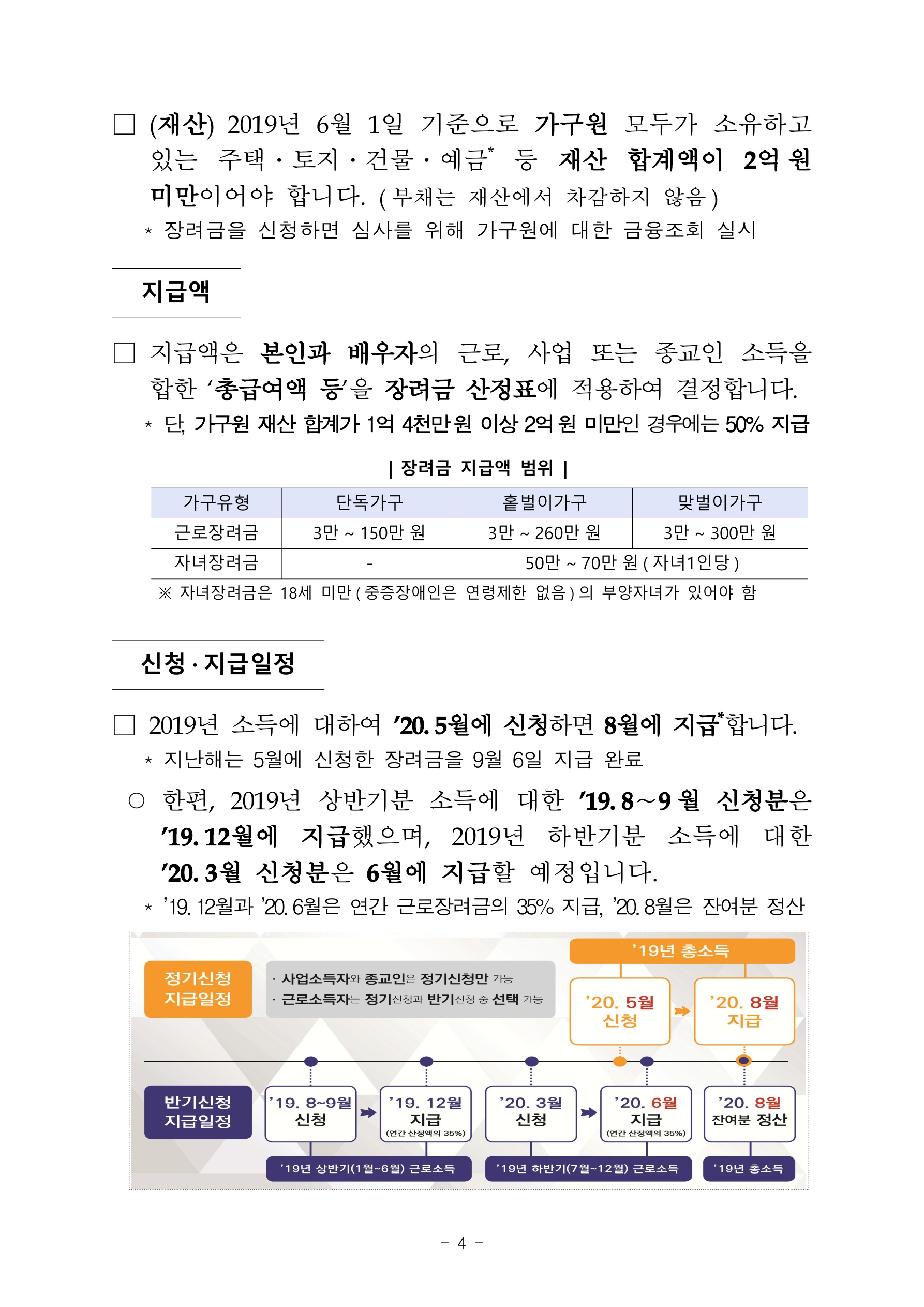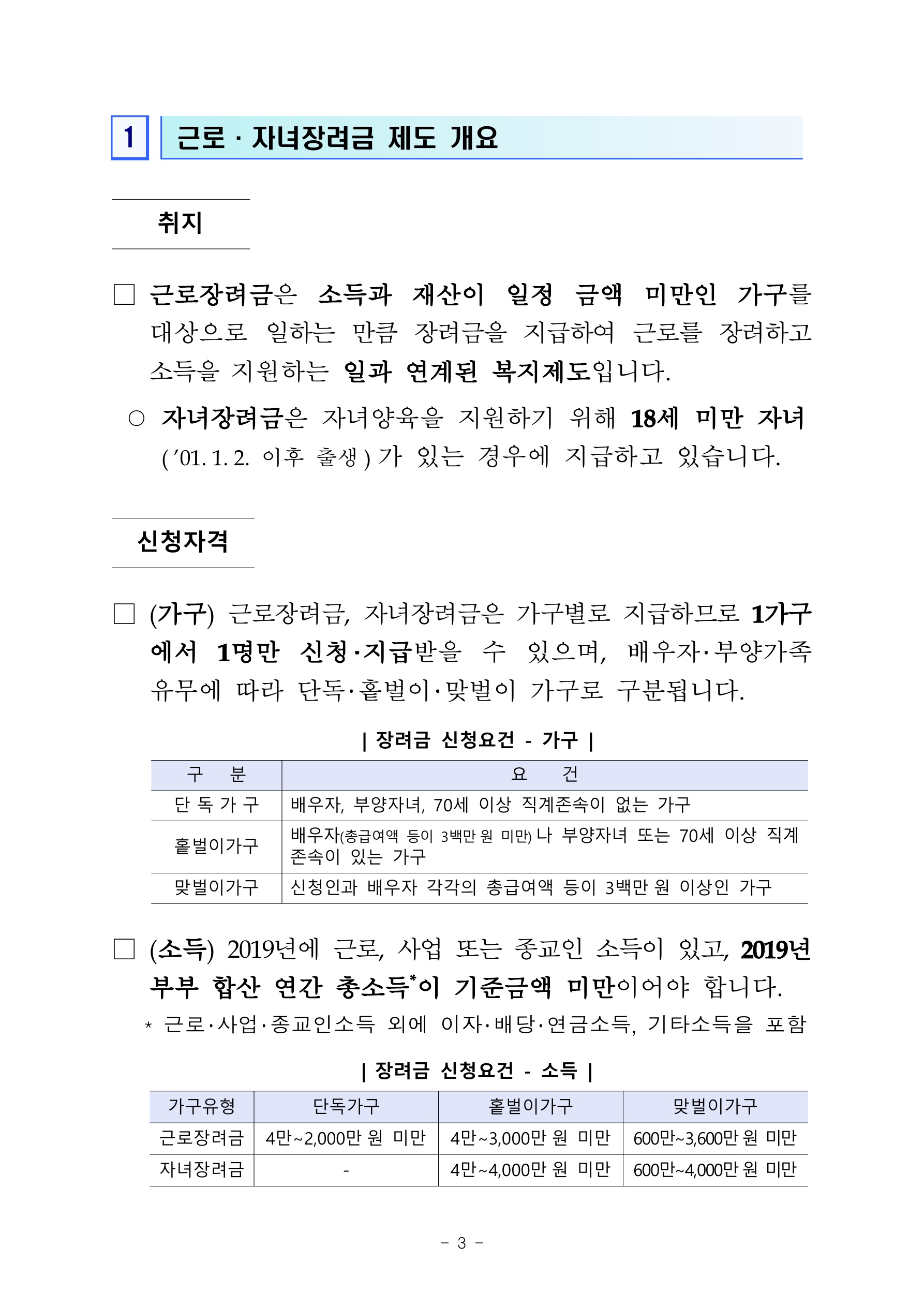 자녀장려금 및 근로장려금 신청 안내 현황이 정리되어 있습니다.