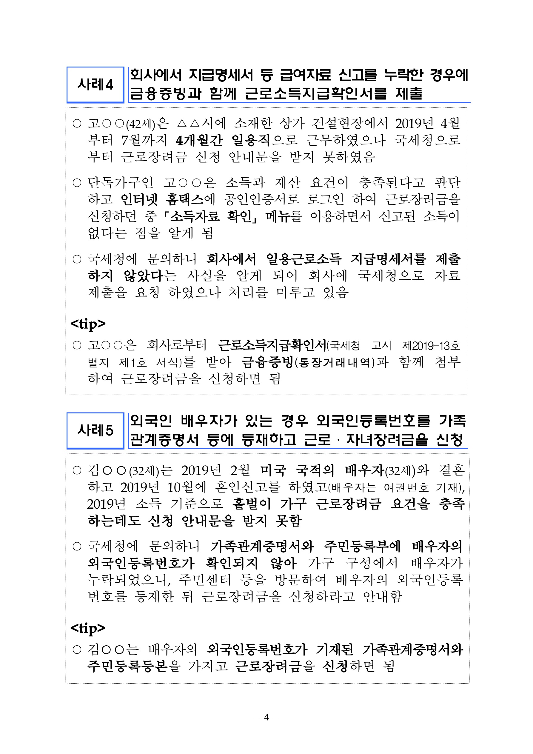 근로 및 자녀 장려금 신청 시 챙겨 볼 내용입니다. 사례로 보기 쉽게 되어 있으니 천천히 보시죠.